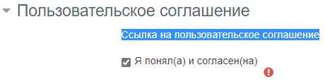 При создании учетной записи необходимо установить "галочку" о согласии с Пользовательским соглашением.