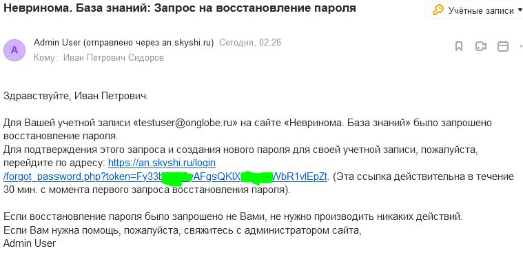 Тема письма «Невринома. База знаний: Запрос на восстановление пароля».