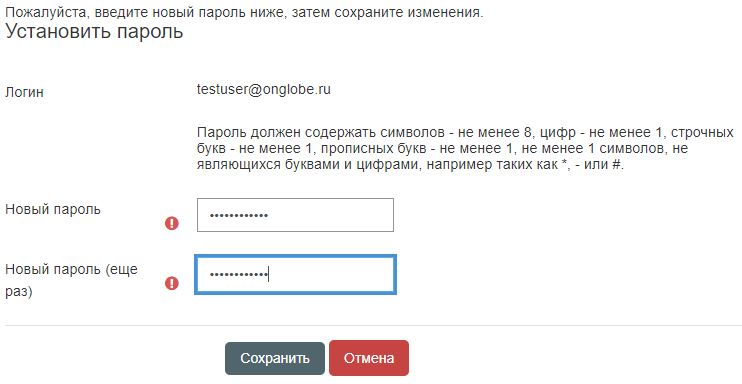 Введите новый пароль два раза и нажмите на кнопку "Сохранить".
